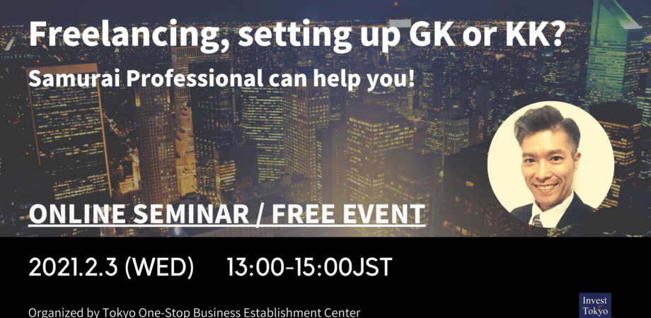 I am going to deliver a presentation about Business Setup mainly about GK (Godo Kaisha = LLC) as a part of the Tokyo Metropolitan Government’s Tokyo One-Stop Business Establishment Center (TOSBEC)’ online seminar on Tuesday 1 June from 13:00. https://www.startup-support.metro.tokyo.lg.jp/onestop/event/1486